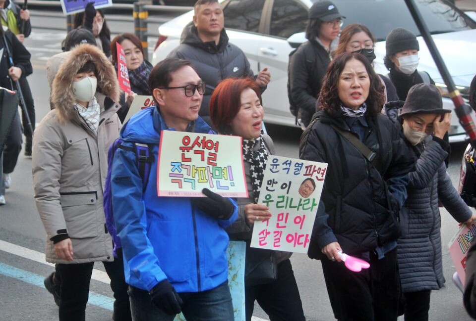 이모(25)씨도 "내란범 윤석열에 대한 법원의 구속 취소 결정에 화가 나서 시국대회에 나왔다"면서 "대한민국의 민주주의를 위기로 몰아넣은 사람에 대한 법원 판단은 이해되지 않는다"고 규탄했다.