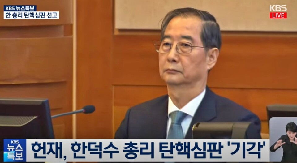헌법재판소가 한덕수(75) 국무총리에 대한 국회의 탄핵소추를 기각했다.
