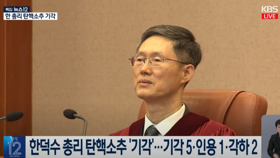 ◆ 헌법재판소(소장 권한대행 문형배)는 24일 오전 10시 헌법재판소 대심판정에서 한덕수 국무총리에 대한 국회의 탄핵소추를 기각 5, 인용 1, 각하 2 의견으로 기각했다.