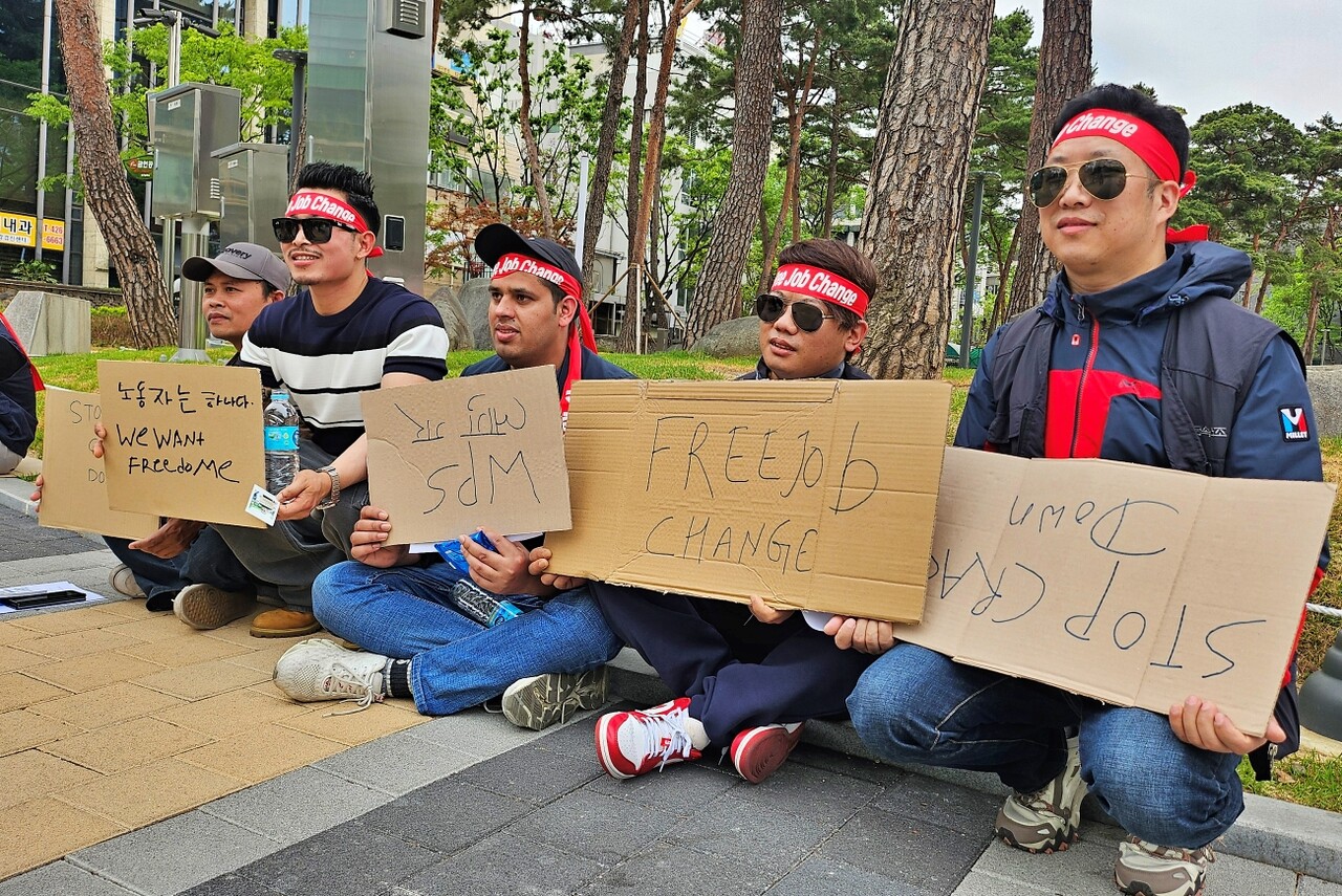 이 자리에 모인 이주노동자들은 한국 정부의 출입국 단속으로 미등록 이주노동자들이 다치거나 숨지는 최근 사례를 비판하며 "폭력 단속을 중단하라"고 목소리를 높였다.