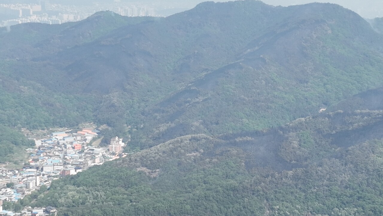 대구시와 대구소방본부는 "29일 오후 1시 기준으로, 북구 노곡동 산12(함지산)에서 발생한 산불의 주불 진화를 완료했다"고 밝혔다. 지난 28일 오후 2시쯤 산불이 난지 23시간 만, 이틀째에 불이 꺼졌다.