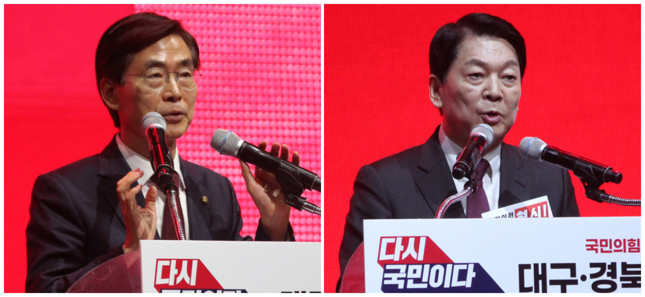 안철수 후보도 "반헌법적 비상계엄을 계몽령이라며 대통령직을 차버린 사람, 헌법재판소의 만장일치 탄핵 심판에도 보수의 핵심 가치인 법치주의는 내팽개치고 여전히 윤 어게인을 신봉하는 사람들도 뭉치기만 하면 잘 풀릴 거라는 극단 세력의 대변자들이 대구경북에 손을 벌리고 있다"며 "극단주의자들이 무슨 짓을 해도 대구경북은 밀어준다는 속내를 이번 전당대회에서 심판해달라"고 호소했다.
