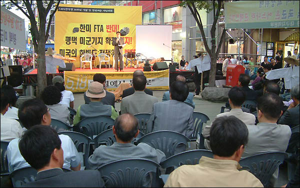 이어, 민주노총대구지역본부 정우달 의장과 경북농민회 천호준 의장, 대구경북통일연대 오규섭 집행위원장이 차례로 나서, ‘한미FTA 반대’와 ‘평택 미군기지 확장 반대’, ‘미국의 한반도 전쟁 반대'를 주장하며 "5월 정신을 통일로 승화시키자"고 목소리를 높였다.