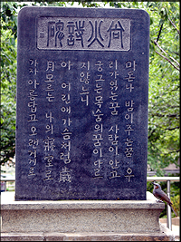 그들의 바로 뒤에 상화 시비가 있다.