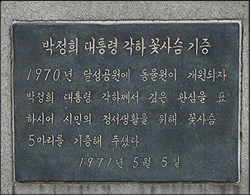 꽃사슴을 몇 번이나 보았어도 ‘박정희각하 꽃사슴기증’ 기념석은 처음 본다.