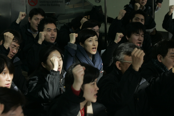 전국언론노동조합 YTN지부(지부장 노종면)는 2일 서울 남대문로 YTN사옥에서 ‘언론악법 총력저지 YTN 출정식’을 열었다. 1층 로비에는 250여명의 조합원들이 모여 의지를 다졌다. 이날은 YTN노조가 ‘구본홍 사장 반대 투쟁’을 벌인지 228일째 되는 날이었다.