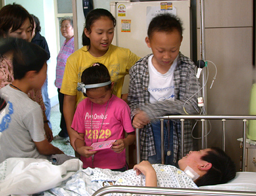 오늘(7.2) 오전에 '임파선 수술'을 한 현빈이는, 병원에 입원한 지 한달만에 처음으로 공부방 친구들이 찾아와 모처럼 장난도 치고 할머니께 어리광도 부려보았다. 특히, 친구들이 사랑 가득한 예쁜 편지도 써와 더 신이 났다. 또, 병원비가 없어 눈앞이 캄캄하던 할머니 이갑련(68)씨도, 저녁 무렵 공부방 실무자가 전해 준 '후원' 이야기에 '손주의 병을 고칠 수 있다'는 새 희망이 생겼기 때문이다.