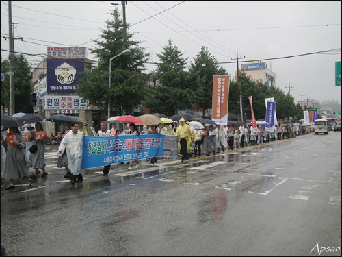 참가자들은 안동 시가지를 30여분 걸어 안동시청에 당도했고, 시청 앞에서 4대강 사업 중단을 촉구하는 약식집회를 열었다.