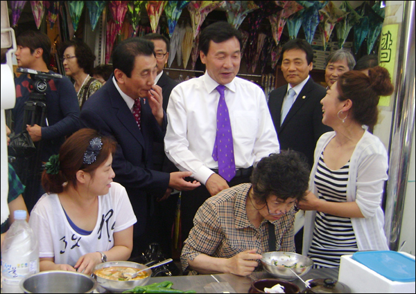 민주당 손학규 대표가 3년 만에 대구 서문시장을 찾았다.