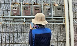 엘리베이터가 없는 계단을 오르내리고, 사람 한 명이 겨우 들어갈 수 있는 좁은 통로를 지난다.대구지역은 전날 내린 비로 기온은 한풀 사그라들었지만, 그럼에도 30도가 넘는 온도와 습도 때문에 길거리를 조금만 돌아다녀도 땀이 비 오듯이 흘렀다. 이날 대구는 체감온도 33도 이상으로 폭염주의보가 내려졌다.푹푹 찌는 더위 속에서 13년차 대성에너지 서비스센터 가스검침원 이희자(57)씨는 4일 오전 남구 봉덕동 인근 주택가를 홀로 돌아다니며 가스계량기를 일일이 확인하고 있었다. 이씨는 햇빛을 막으려 모자와 목까지 오는 마스크, 긴팔 옷을