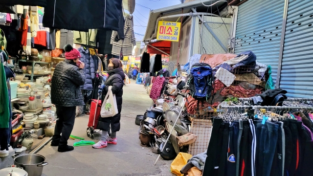 5일 오전 대구 남구 관문시장 구제골목에서 흥정이 벌어졌다. 전국 최대 규모의 헌옷을 판매하는 구제시장. 관문시장 3지구의 모습이다. 한 60대 여성은 손주 설빔을 사기 위해 이날 시장을 찾았다.