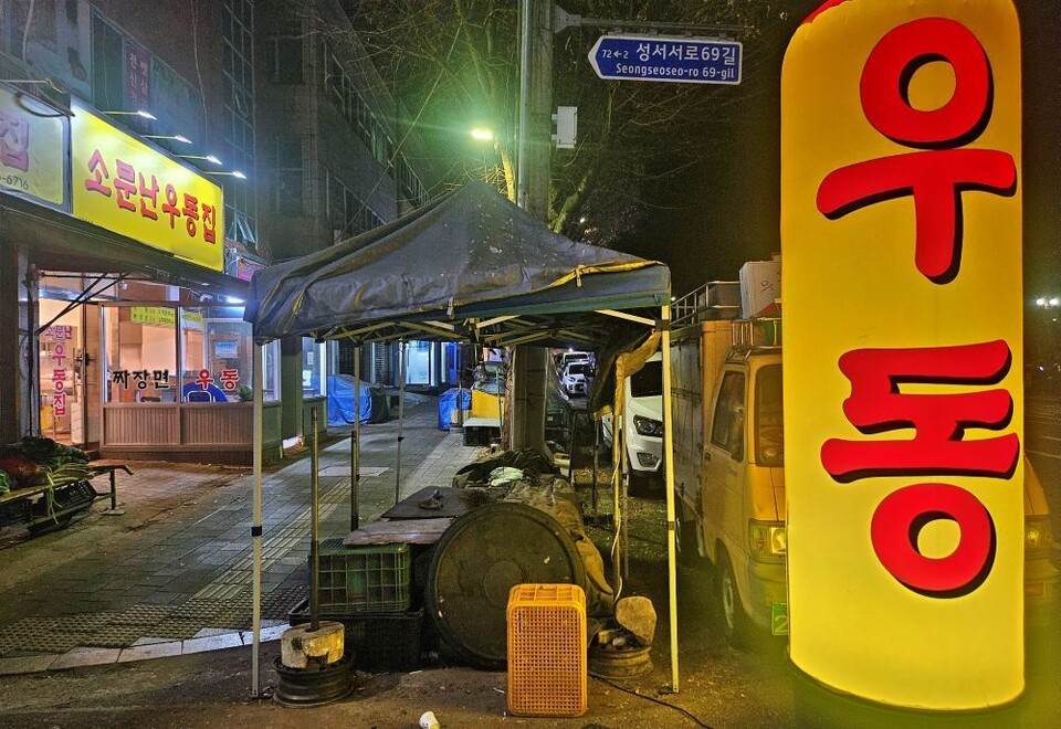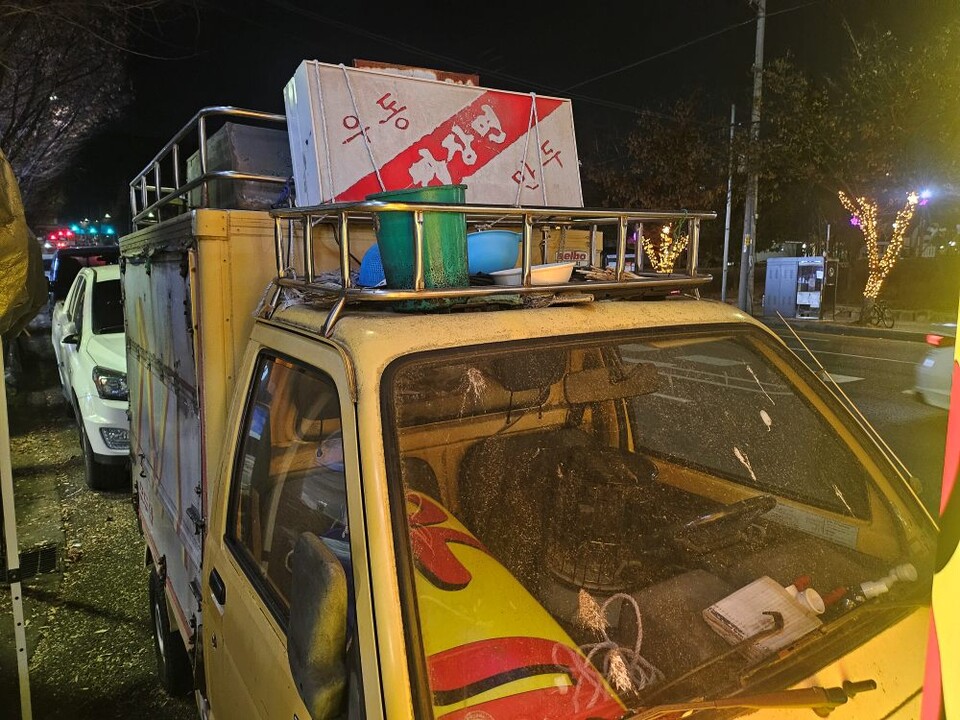 27년 간 동거동락한 '포차트럭' 대신 지난 11월 작은 가게를 차려 장사한 지 갓 한 달이 되었다. 이제는 낮부터 영업을 시작해 새벽 2시까지 가게 문을 연다. 그럼에도 세월을 고스란히 간직한 노란색 트럭은 마스코트처럼 가게 앞 자리를 차지하고 있다. 작은 가게라도 차리게 해 준 게 바로 트럭 덕분이다.