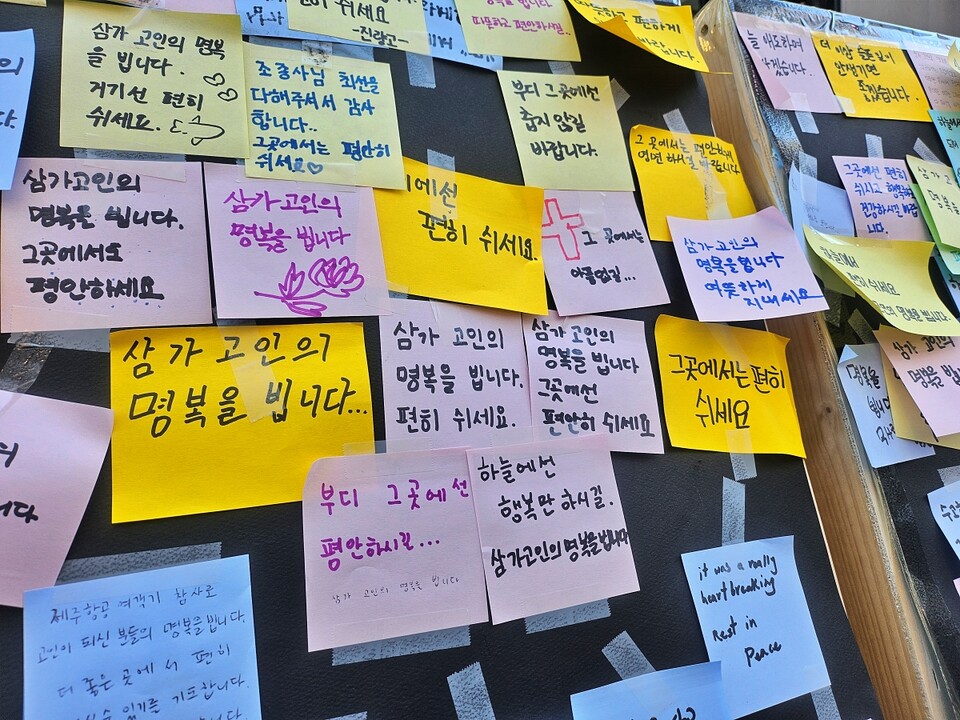 집회 장소 한켠에는 "잊지 않겠습니다", "하늘에서는 편히 쉬세요", "부디 그곳에서는 평안하시길"이라고 적힌 메모지들이 붙었다. "제주항공 여객기 참사, 희생자분들의 명복을 빕니다"라고 적힌 근조 리본도 가슴에 달았다.